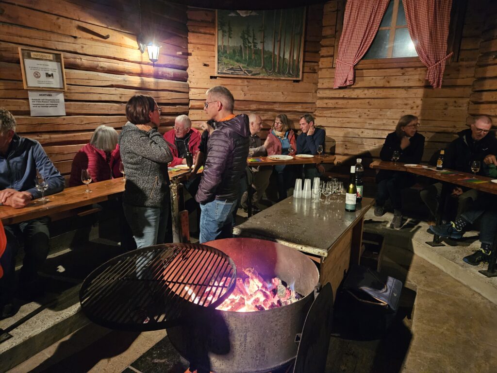 Danach machten wir uns auf den Weg durch den Wald zur Jagthütte Rothenburg west. Dort erwartete uns ein reichhaltiges und feines Apéro ums gemütliche Feuer. Mit vielen interessanten gesprächen.